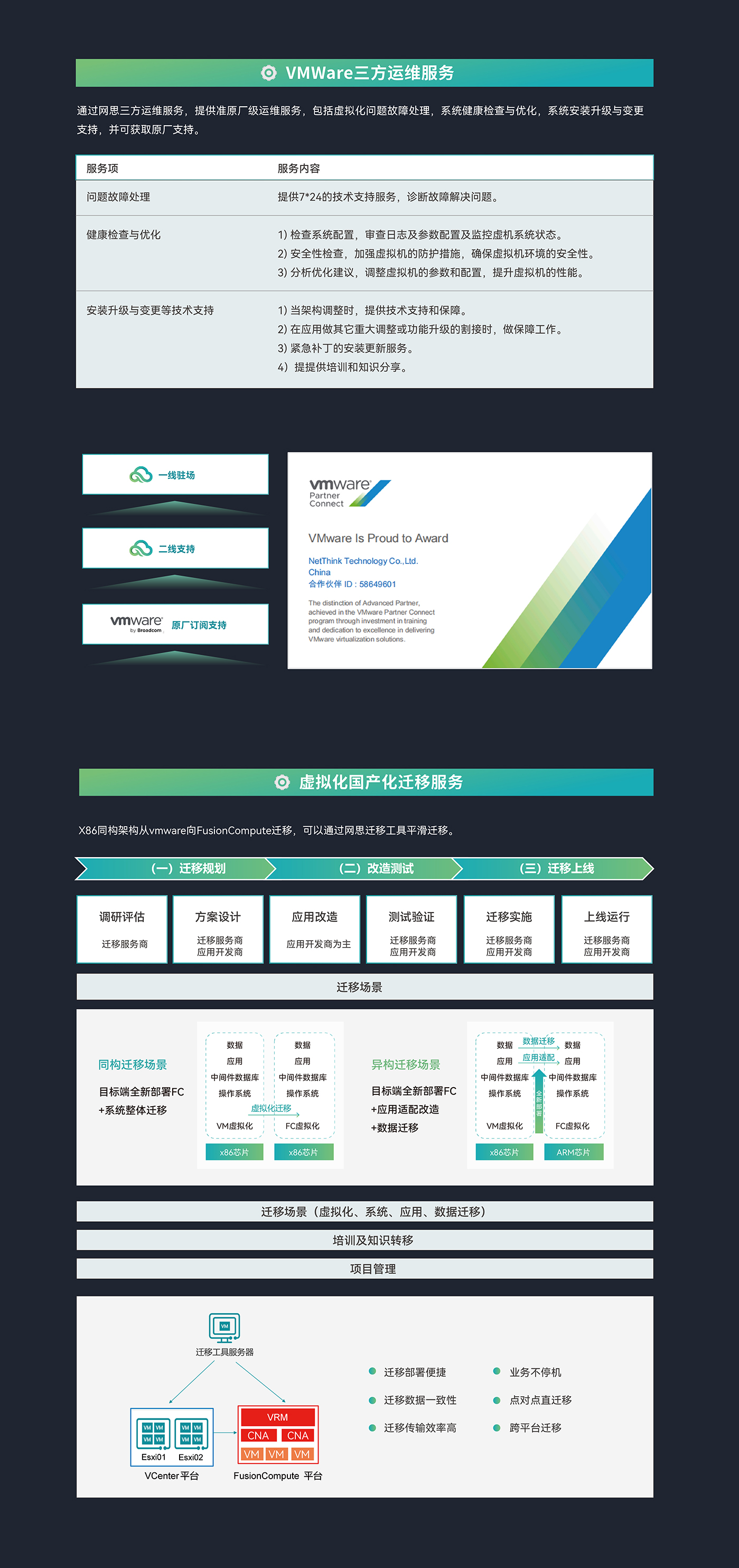 leyu-乐鱼(中国)官方网站-leyu.com 作为VMWare产品服务授权代理商和服务商,具有专业的服务团队、服务方案和服务经验,提供VMware三方运维和国产化迁移替代服务。